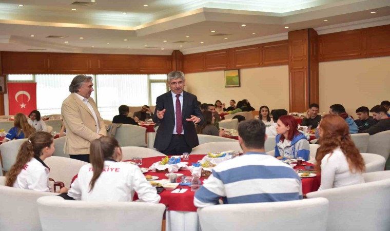 Sıtkı Koçman Özel Salon’da gerçekleşen yemekte Rektör Prof. Dr. Turhan Kaçar’ın yanı sıra Rektör Yardımcıları Prof. Dr. Deniz Ülgen, Prof. Dr. Ali Sülün, Spor Bilimleri Fakültesi Dekanı Prof. Dr. Özcan Saygın, MSKÜ Genel Sekreter Vekili Çetin Haliloğlu, SKS Daire Başkanı Şamil Aktürk, Spor Bilimleri Fakültesi öğretim elemanları, antrenörler ve sporcular bir araya geldi.