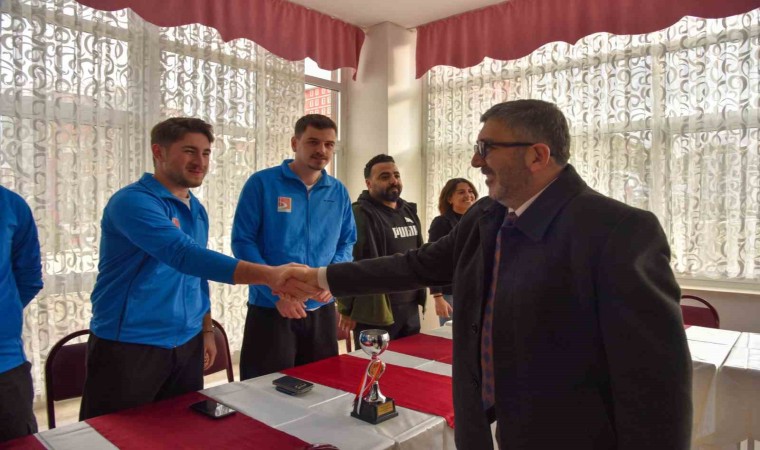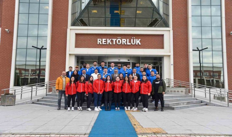 Sağlık, Kültür ve Spor Daire Başkanlığı bünyesindeki futbol ve voleybol takımları, Beden Eğitimi ve Spor Bölümü Başkanlığı iş birliğiyle katıldıkları Bölgesel Lig Grup Müsabakalarında elde ettikleri başarıların ardından, BŞEÜ Rektör Prof. Dr. Zafer Asım Kaplancıklı ile bir araya geldi. Rektör Kaplancıklı, Türkiye Üniversite Sporları Federasyonu 2024-2025 Faaliyet Programı çerçevesinde gerçekleştirilen Bölgesel Lig Grup Müsabakalarında, futbol ve kadınlar ile erkekler kategorisindeki voleybol takımlarının sergiledikleri performansla üniversitenin gurur kaynağı oldukları belirti. Rektör Kaplancıklı, "Afyon Kocatepe Üniversitesi ev sahipliğinde düzenlenen Futbol Bölgesel Lig Grup Müsabakalarında, BŞEÜ, futbol takımı Afyon Kocatepe Üniversitesi, Alanya Alaaddin Keykubat Üniversitesi, Uşak Üniversitesi ve Eskişehir Osmangazi Üniversitesi ile aynı grupta mücadele etti. Müsabakalar sonucunda BŞEÜ takımı Afyon Kocatepe Üniversitesi’ni 3-0, Uşak Üniversitesi’ni 2-0 yenerek, Eskişehir Osmangazi Üniversitesi ile 3-3 berabere kaldı. Alanya Alaaddin Keykubat Üniversitesi’ne ise 2-0 mağlup oldu. Eskişehir Osmangazi Üniversitesi ev sahipliğinde düzenlenen Ünilig Voleybol Bölgesel Lig Grup Müsabakalarında, BŞEÜ, kadın ve erkek voleybol takımları mücadele etti. Kadınlar kategorisinde turnuva 4. sırada tamamlanırken, erkekler kategorisinde ise 3. sırada yer alınarak üniversitemize kupa kazandırdı. Üniversitemiz öğrencilerinin elde ettiği bu başarılar, bizleri hem gururlandırıyor hem de daha büyük hedeflere ulaşma noktasında motive ediyor. Sporun; azim, disiplin ve takım ruhu gibi değerleri öğrencilerimize kazandırdığına inanıyorum. Tüm sporcularımızı ve bu başarılara katkı sağlayan ekip arkadaşlarını gönülden kutluyorum” dedi.