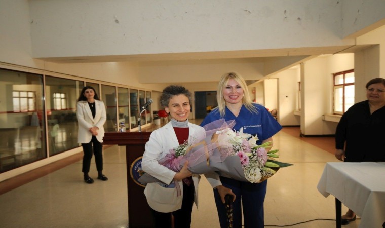 Rektör Özkan, hastane çalışanı Necibe Evrim Tongül’e günün anısına çiçek takdim etti. Rektör Özkan daha sonra katılımcılarla bir süre sohbet etti.