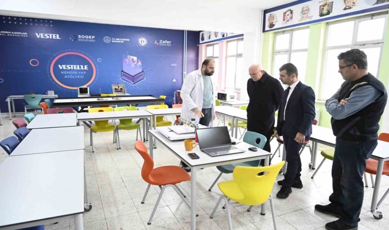 Uşak Üniversitesi Rektörü Prof. Dr. Ekrem Savaş, Uşak Üniversitesi ile Vestel işbirliğinde ‘Vestel’le Kendin Yap Atölyeleri’ projesi kapsamında Karaağaç Ortaokuluna kurulan “Kendin Yap Atölyesini” ziyaret etti.