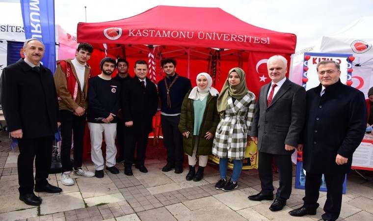 Kastamonu Üniversitesi Rektörü Prof. Dr. Ahmet Hamdi Topal, Rektör Yardımcıları Prof. Dr. Kasım Yenigün, Prof. Dr. Mehmet Atalan ve Prof. Dr. Ömer Küçük ile birlikte öğrenci toplulukları tarafından açılan tanıtım stantlarını ziyaret etti. Ziyarette faaliyetler ve projeler hakkında bilgi alan Rektör Topal, öğrencilerin sosyalleşmesinde önemli bir yere sahip olan topluluklara öğrenci tarafından gösterilen ilgiden memnun olduğunu kaydetti.