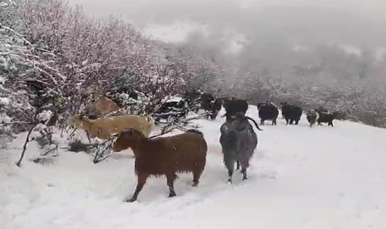 Tokat’ta çobanlık yapan Serhan Çakmak, karla kaplı yaylada keçilerini yaylıma çıkartarak unutulmaz bir an yaşattı.