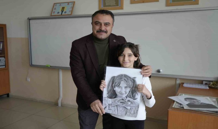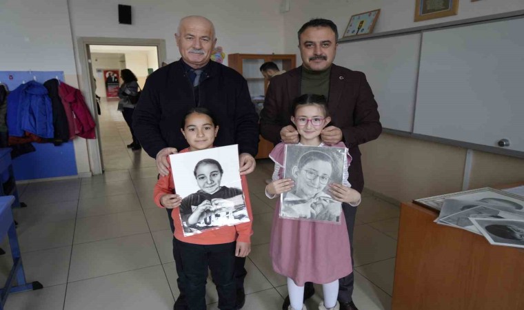 GÜMÜŞHANE (İHA) – Gümüşhane’nin Şiran ilçesinde Şehit Turgay Türkmen İlkokulu öğrencileri Türkiye’nin farklı şehirlerinde bulunan 20 ressam tarafından hazırlanan karakalem portre çalışmalarında kendi yüzlerini görünce şaşkınlıklarını gizleyemedi. Okula ismini veren şehit Turgay Türkmen’in çizilen portresi de ailesine teslim edilmek üzere idarecilere teslim edildi.