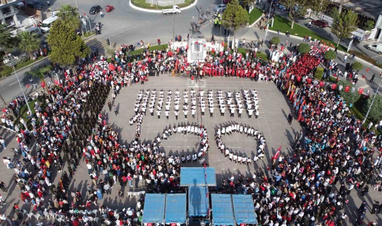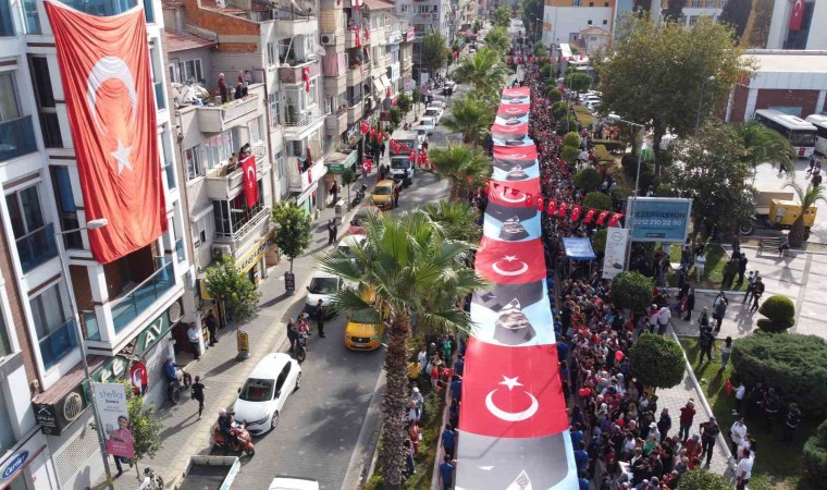 Balıkesir’in Edremit ilçesinde Cumhuriyet’in 100 yılı, geniş katılımlı bir törenle kutlandı. Törende 350 metre uzunluğunda Türk bayrağı taşıyan öğrenciler, görsel bir şölene imza attılar.