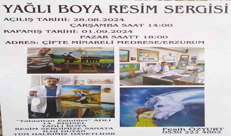 Erzurumlu ressam Fesih Özyurt, 14’nci kişisel resim sergisini tarihi Çifte Minareli Medrese’de açmaya hazırlanıyor.