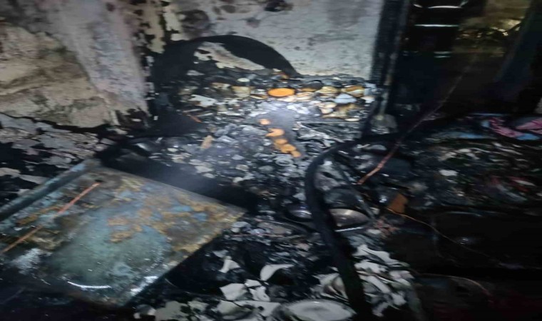 Hatay’da alevlere teslim olarak yanan ev kullanılmaz hale geldi.
