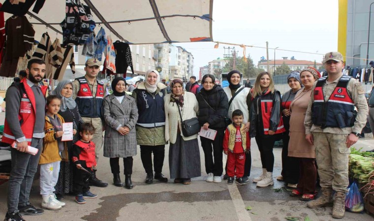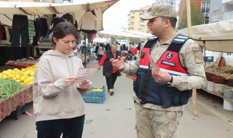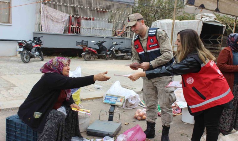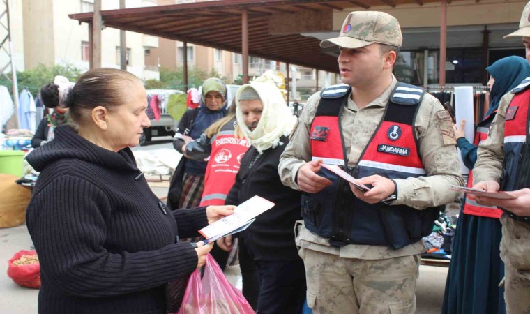 HATAY (İHA) – Hatay’da polis ve jandarma ekipleri, kadına yönelik şiddetle mücadelede farkındalığı artırmak amacıyla pazarda broşür dağıttı.