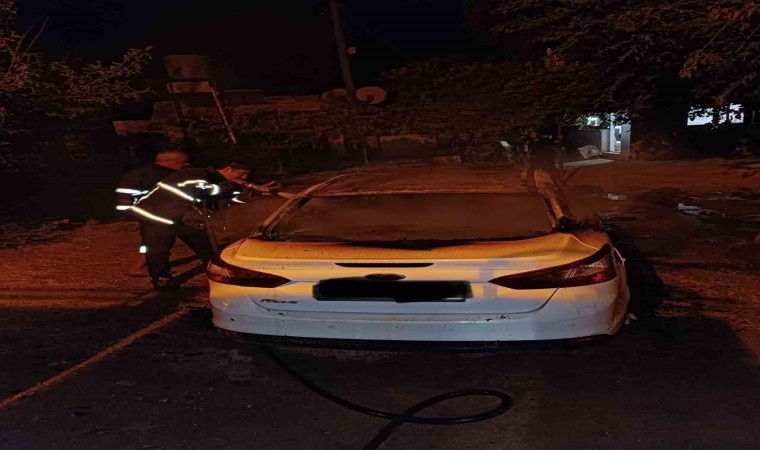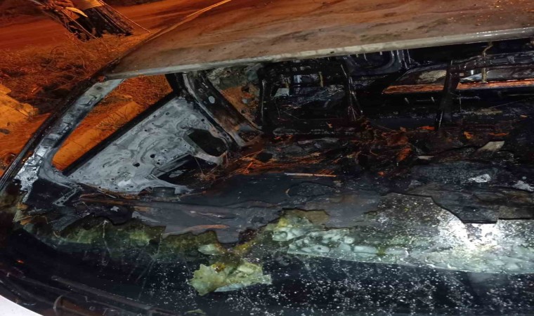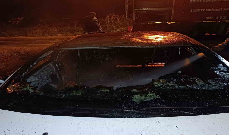 Hatay’ın Reyhanlı ilçesinde yanan otomobil kullanılmaz hale geldi.