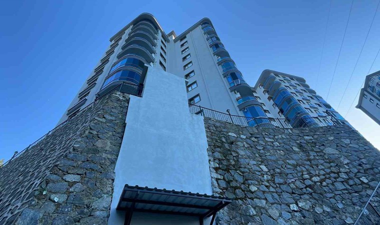 Rize’de 3 bloktan oluşan sitenin bir apartmanının giriş kapıları kot farkı nedeniyle 20 metre yukarıda kalınca apartmana girişlerin daha kolay ve hızlı bir şekilde yapılması için asansör yaptırıldı.