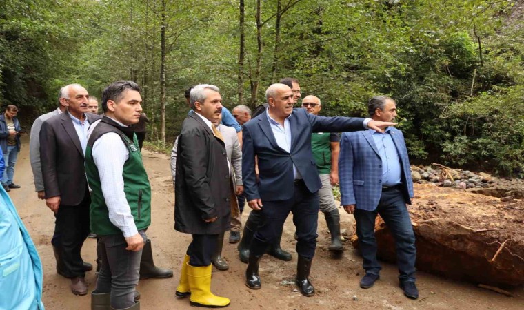 Rize Valisi İhsan Selim Baydaş, şiddetli yağışlarla heyelanların meydana geldiği Ardeşen ilçesine bağlı Tunca beldesinde incelemelerde bulundu.