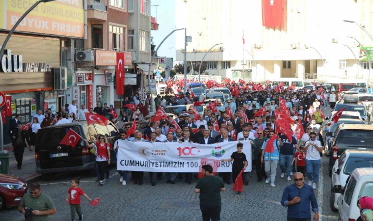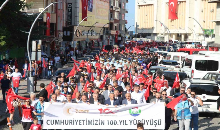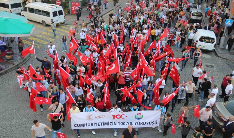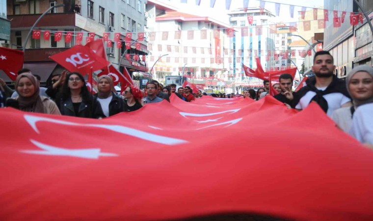 Rize’de Cumhuriyetin 100. Yılı kutlamaları için 100 metrelik bayrakla yürüyüş gerçekleştirildi.