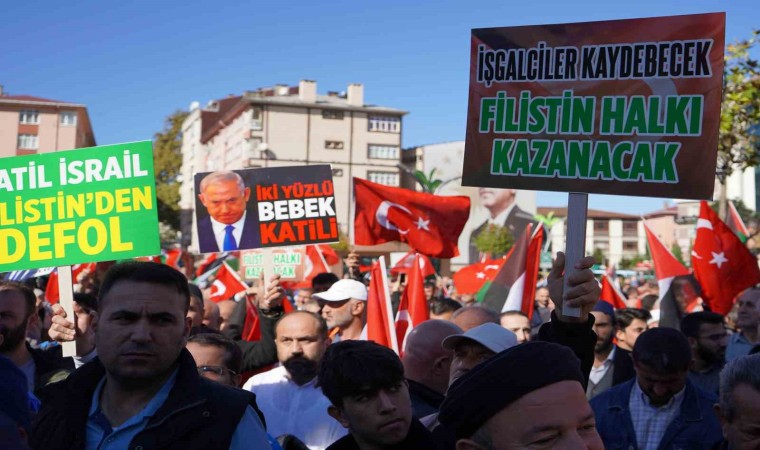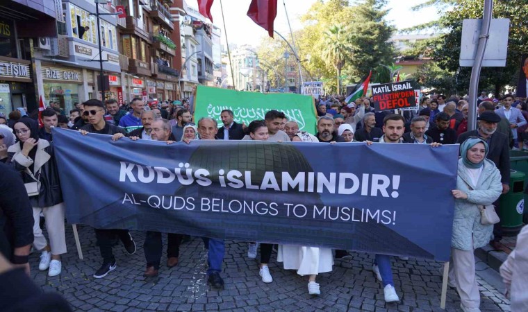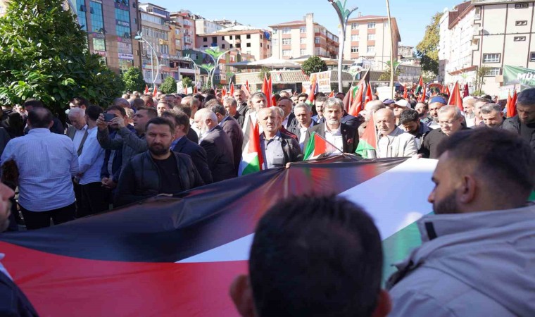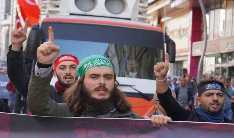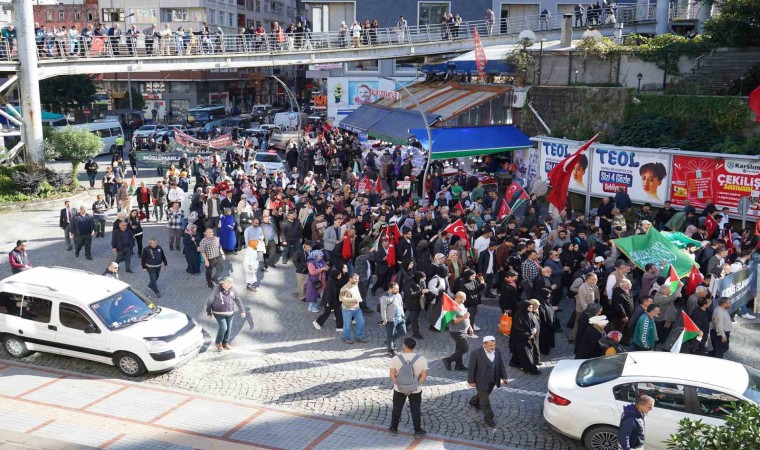 Rize merkez ve ilçelerinde düzenlenen Filistin’e Destek Mitingi’nde binlerce kişi yürüyüş yaparak İsrail’e tepki gösterdi.