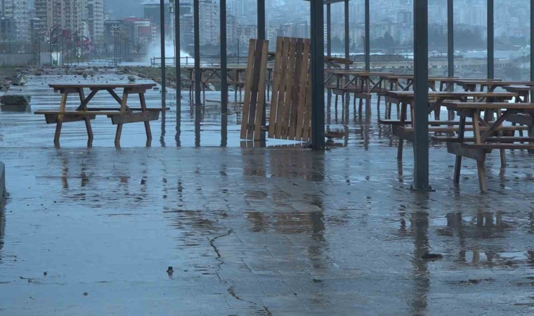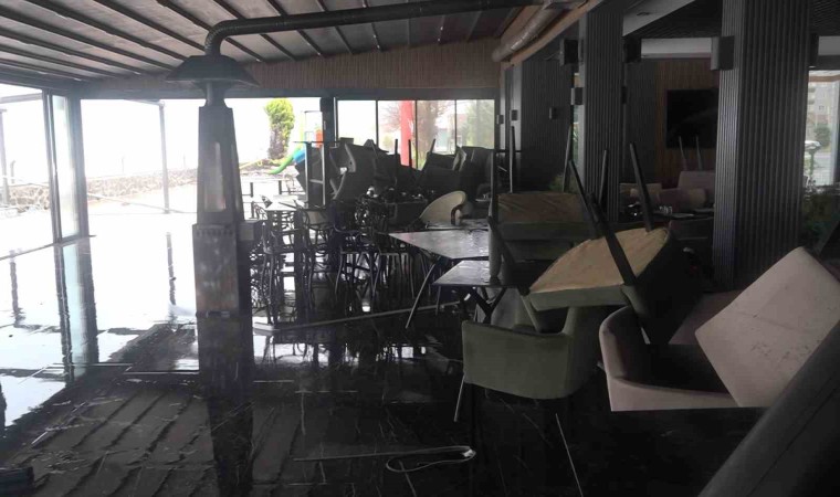 Şiddetli fırtınanın etkili olduğu Rize’de sahil kesimindeki işletmeler dalgalardan zarar gördü.