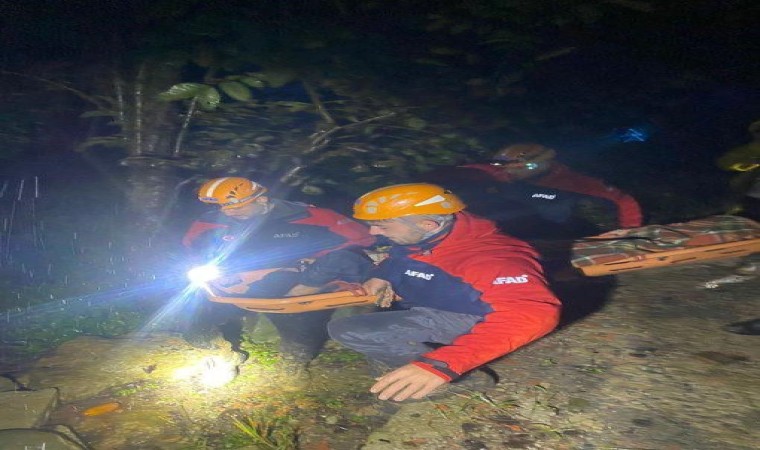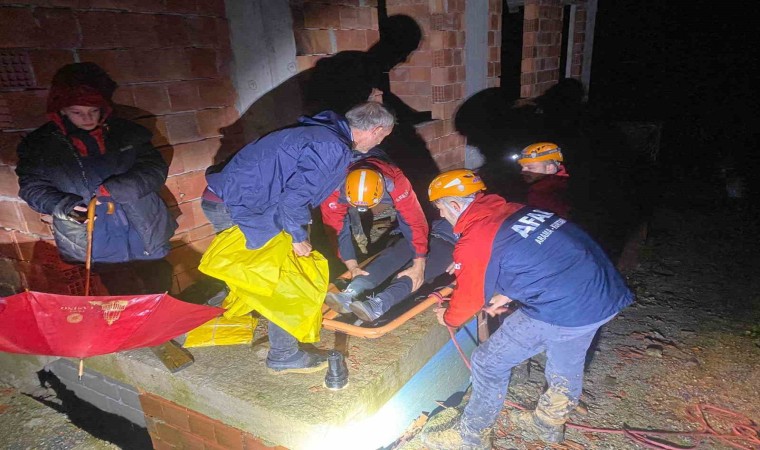 Rize’de heyelan riski nedeniyle 5 kişilik ailenin yaşadığı ev ekipler tarafından tahliye edilirken, evdeki yaşlı hasta sedye ile taşındı.
