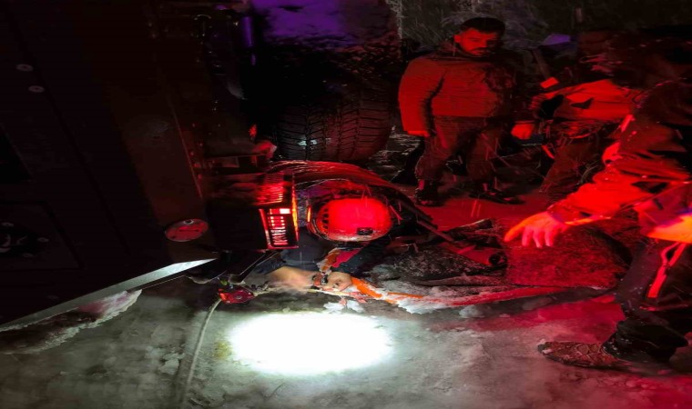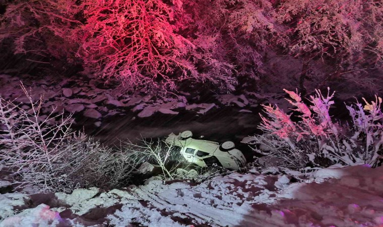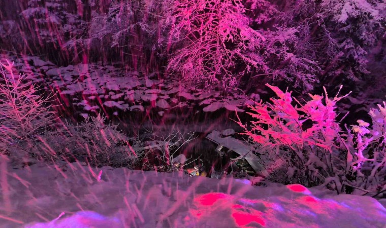Rize’de karlı yolda kayarak dereye uçan kamyonetteki 3 kişi yaralandı.