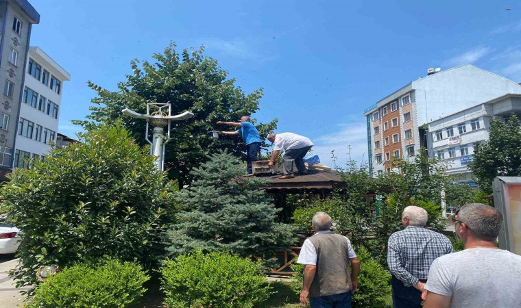 Arıcılıkta oğul vermek olarak bilinen arıların kovan dışında başka bir topluluk oluşturması olayına Rize’nin Çayeli ilçesinde İl Genel Meclis üyesi müdahale etti.