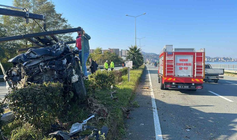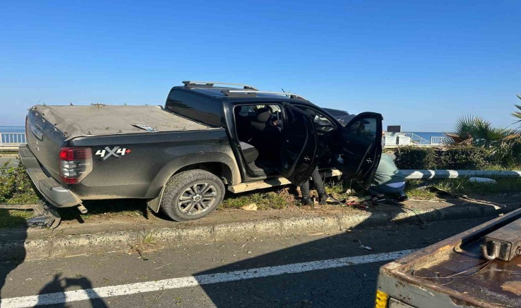 Rize’nin Pazar ilçesinde kontrolden çıkan kamyonet direğe çarptı, 2 kişi yaralandı.