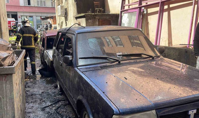 Rize’de park halinde bulunan 2 otomobil alev alev yandı. Otomobiller kullanılamaz hale geldi.