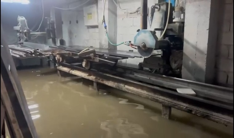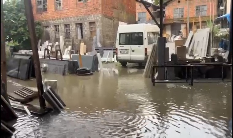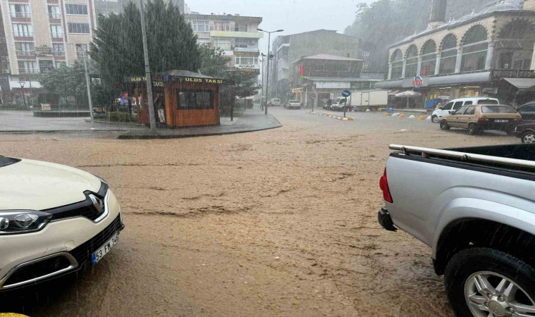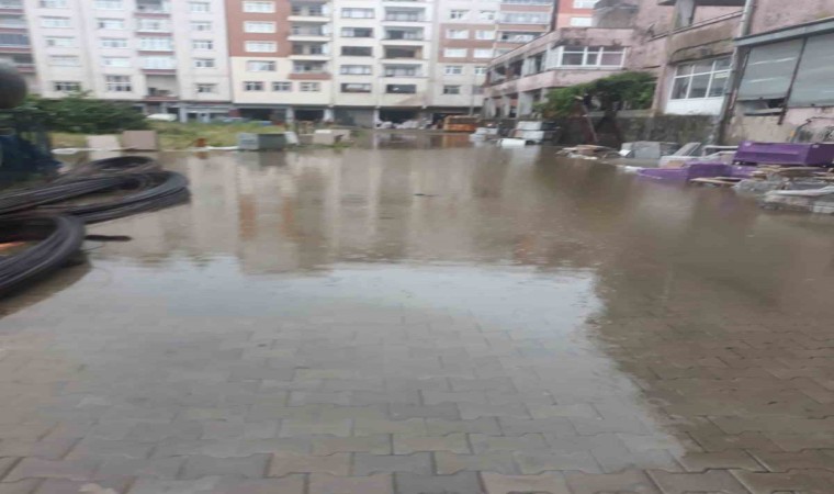 Rize’nin Pazar ilçesinde şiddetli yağmur sonucu cadde ve sokaklar göle dönerken bazı işyerlerini de su bastı.