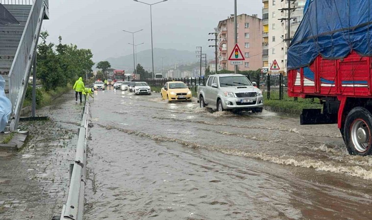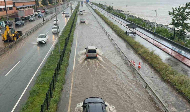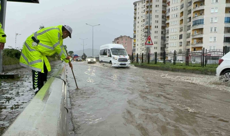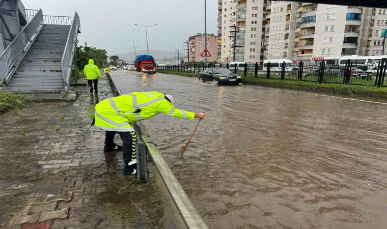 Öte yandan, Karadeniz Sahil Yolu giderlerin tıkanması ile su altında kaldı. Polis ekipleri, tıkanan giderleri açmak için çalışma yaptı.