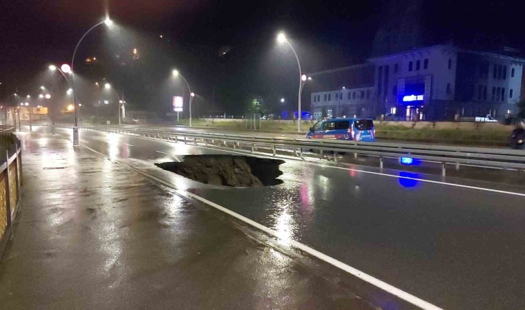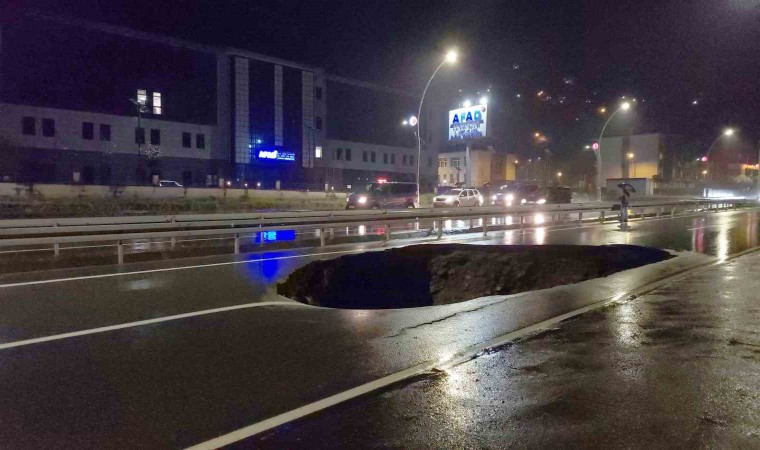 Rize’de akşam saatlerinde etkili olan yağmurdan ötürü Rize’den Güneysu istikametine giden karayolunda yaklaşık 5 metre genişliğinde, 2 metre derinliğinde bir çukur oluştu. Daha önce de çökme yaşanan yoldan olay anında aracın geçmemesi büyük bir faciayı önlemiş oldu. Rize-Güneysu istikametindeki yol trafiğe kapatılırken Güneysu istikametinden Rize istikametine gelen yol ise tek yönden çift yöne çevrildi.