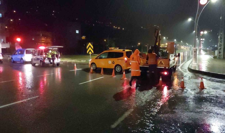 Rize’de etkili olan şiddetli yağışlar sonrasında Rize-Güneysu karayolunda çökme meydana geldi.
