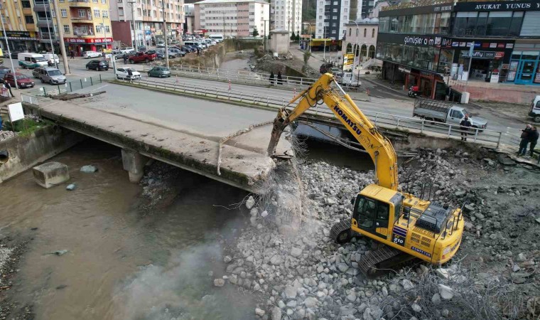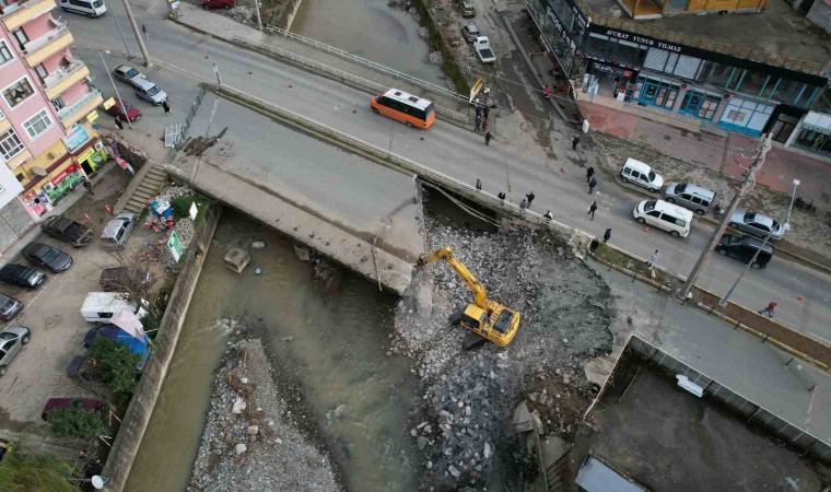 Rize’nin Çayeli ilçesinde taşkınlardan ötürü gündeme gelen Şairler Deresi’nde dere ıslahı kapsamında 2 köprünün yıkımına başlandı.