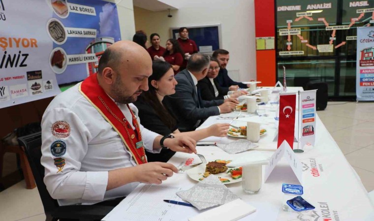 Rize’nin Pazar ilçesindeki Hamidiye mahallesindeki bir okulda ‘Tutum, Yatırım ve Türk Malları Haftası’ çerçevesinde ‘Şefler Yarışıyor’ adı altında etkinlik düzenlendi. Düzenlenen etkinlikte öğrenci velileri Laz Böreği, Zeytinyağlı Karalahana Sarması ve Hamsili Ekmek kategorilerinde kıyasıya yarıştı. Veliler kendi elleriyle hazırladıkları ürünleri jürinin beğenisine sundu. Yarışmada Recep Tayyip Erdoğan Üniversitesi (RTEÜ) Ardeşen Turizm Fakültesi Dekanı Prof. Dr. Alaattin Kızıltan, Gastronomi ve Mutfak Sanatları Bölüm Başkanı Dr. Öğr. Üyesi Burcu Ayşenur Saklı, Bölüm Başkan Yardımcısı Dr. Öğr. Üyesi Gökhan Onat, Öğr. Gör. Ayşe Gülnihal Altın, Şef Ali Erdem Güney jüri üyesi olarak yer aldı.