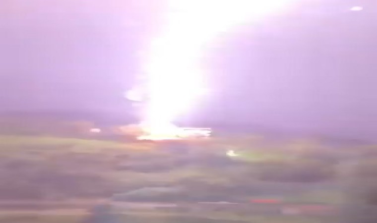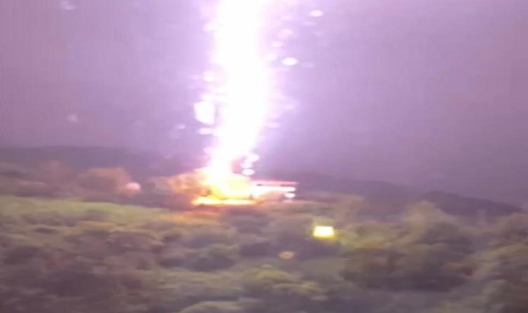 Rize’de kuvvetli yağışlarla beraber bir evin yakınına yıldırımın düşme anı cep telefonuyla kaydedildi.
