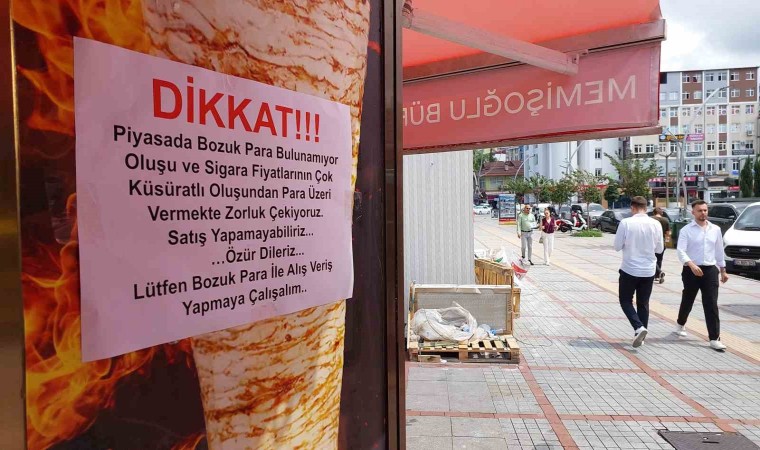 Rize’de piyasada bozuk para bulamayan esnaf işletmesinin camına “Lütfen bozuk para ile alış veriş yapmaya çalışalım” yazılı uyarı yazdı.