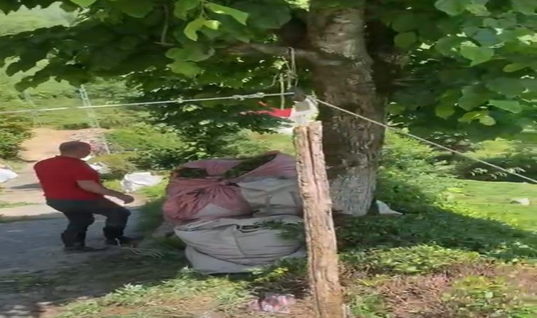 Rizeli çay üreticisi çayını bahçesinden çıkarmak ve taşımak için bulduğu pratik yöntemle dikkatleri üzerine topladı.