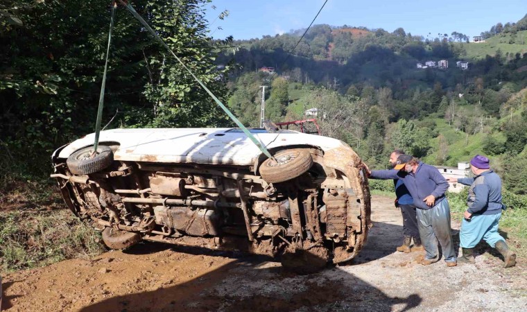 Rize’de dün gece saatlerinde meydana gelen heyelanda minibüs balçıkla birlikte uçuruma yuvarlandı. Maddi hasarın meydana geldiği minibüsün sahibi Adem Birinci, “Evde bir ses duydum, bir patlama sesi gibi. O arada 3. kattaki pencereden çaylığa atladım. Karşıya mahalleye kadar kaçtım. 1-2 saat sonra sakinleştikten sonra gelip baktık, üstten sel gelip arabayı aşağıya atmış" dedi.