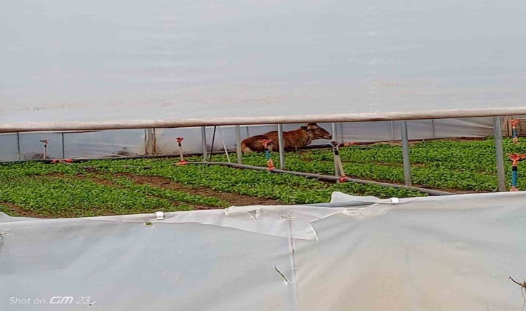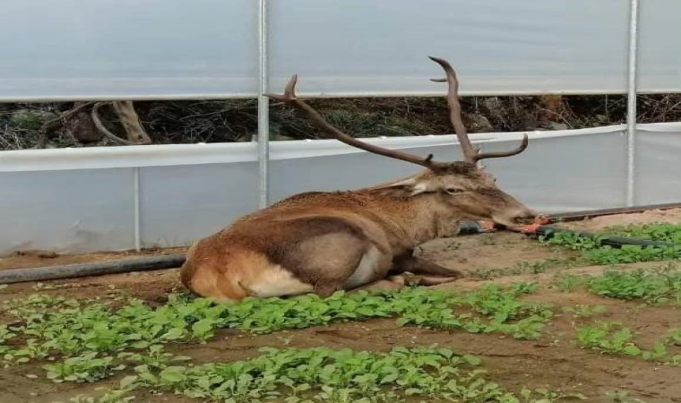 Mihalgazi’de dinlenmek isteyen bir geyik bölgede bulunan roka serasına girdi.