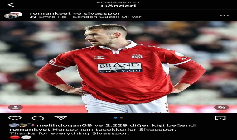 Kvet, fotoğrafa, “Her şey için teşekkürler Sivasspor” notunu ekledi.