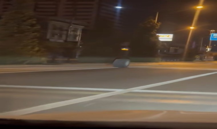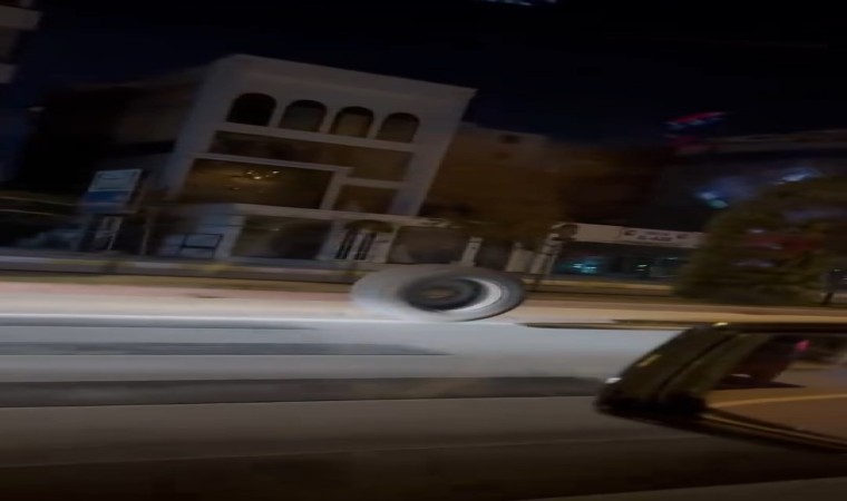 Elazığ’da pancar yüklü römorkun tekerleği seyir halindeyken yerinden çıktı. Tekerlek trafikte metrelerce ilerlerken o anlar bir vatandaşın cep telefonu kamerasına yansıdı.