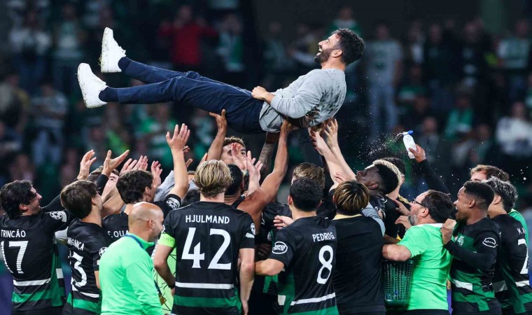 Manchester City ile oynanan maçı da 4-1 kazanan Sporting’de Ruben Amorim, son maçında tarihi bir galibiyet elde etti. Son düdüğün ardından futbolcularla birlikte tribünleri selamlayan 39 yaşındaki teknik adamı, futbolcular da çıkış tünelinin önünde havaya atarak sevgisini gösterdi.