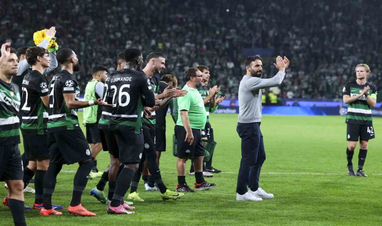 Portekiz’de Sporting ekibini çalıştıran ve geçtiğimiz günlerde Manchester United kulübü ile anlaşan Ruben Amorim, yeşil-beyazlı kulübe ve taraftarlara Şampiyonlar Ligi maçıyla veda etti. Jose Alvalade Stadyumu’nda Manchester City’yi konuk eden Sporting’de taraftarlar, karşılaşma öncesi Portekizli teknik adama sevgi gösterisinde bulundu. Mart 2020’den itibaren takımı çalıştıran Amorim için tribünlerde ’Obrigado (Teşekkürler)’ yazılı dev bir pankart açılırken, görselde genç çalıştırıcı ve kazandığı kupalar yer aldı.