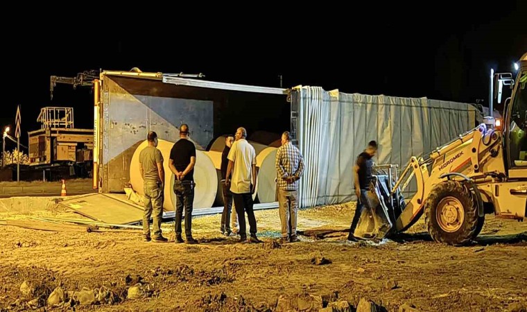 Afyonkarahisar’da rulo kağıt taşıyan tır kontrolden çıkarak devrilirken, kazada şans eseri ölen ya da yaralanan olmadı.