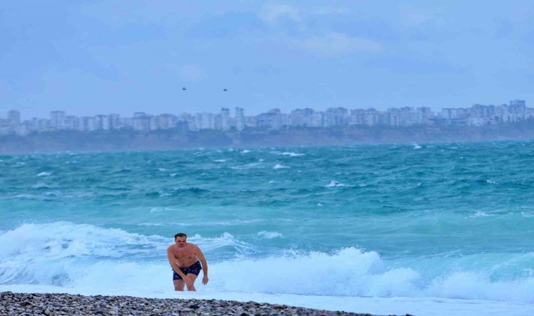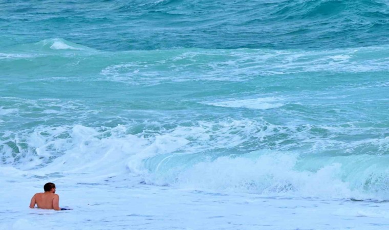 Antalya’da meteorolojinin Cumartesi gecesi için saatte 70 ila 100 kilometre hızında fırtına uyarısına saatler kala, rüzgar etkisini göstermeye başladı. Dev dalgaların oluştuğu sahil kesimlerinde Rus bir turist tehlikeye aldırış etmeden denizin keyfini çıkardı. Rüzgarın etkisinden dolayı martı ve kargalar uçmakta güçlük çekti.
