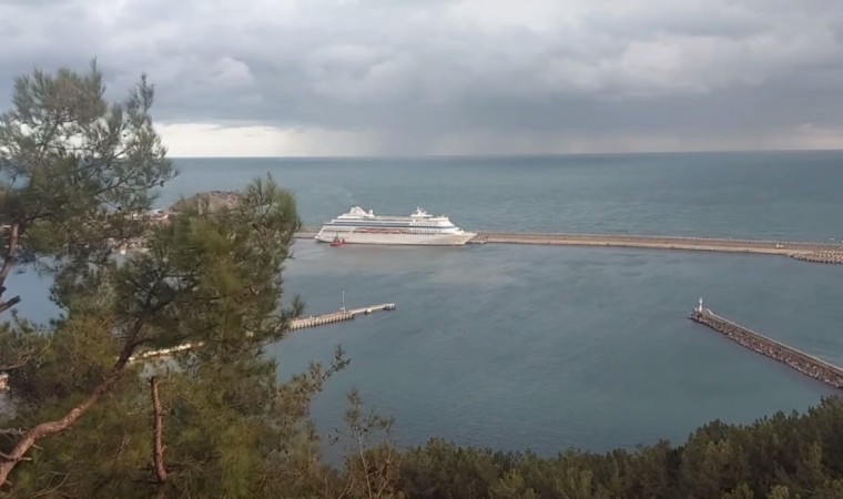 Rusya’dan demir alan 193 metre uzunluğa ve 30 metre genişliğe sahip Astoria Grande isimli kruvaziyer gemi, fırtına ve dalga nedeniyle 26. kez geldiği Amasra Limanı’na güçlükle girebildi. 670 yolcusu ve 460 personeli bulunan gemi, klavuz tekne ve sahil güvenlik botunun yardımıyla, geri manevra yaparak iskeleye yanaşabildi.