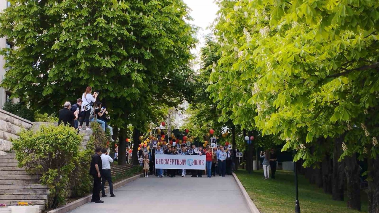 Sovyetler Birliği’nin Büyük Vatan Savaşı olarak isimlendirdiği 2. Dünya Savaşı’nda Nazi Almanyası’nı mağlup etmesinin 78. yıl dönümü dolayısıyla yapılan "Zafer Günü" kutlamaları çerçevesinde Rusya’nın Ankara Büyükelçiliğinde "Ölümsüz Alay" yürüyüşü gerçekleştirdi.