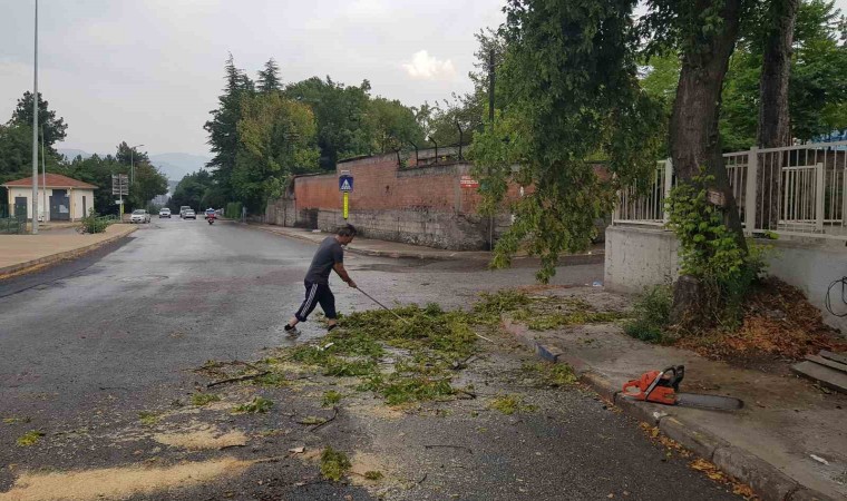 Çevredekilerin ihbarı üzerine olay yerine polis ve temizlik personelleri sevk edildi. Ekiplerin çalışmalarıyla ağaç yoldan kaldırılırken, kopma noktasına gelen dal kesildi.