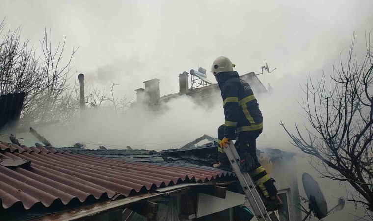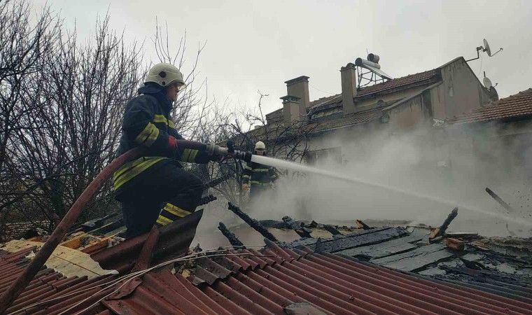 Edirne’de çatıda başlayan yangın, rüzgarın etkisiyle kısa sürede büyüyerek evi kullanılamaz hale getirdi.