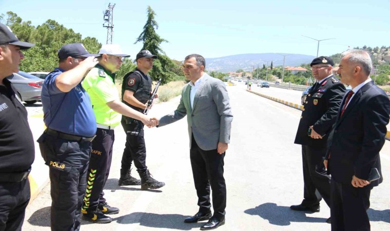 Antalya ve Fethiye gibi tatil yerlerinin yol güzergahında olan ve Arife günü itibariyle saatte ortalama bin 600 aracın geçtiği Burdur’da bayram boyunca 7 bin 118 güvenlik personeli görev alacak. Polis Kışla Uygulama Noktasını ziyaret eden Vali Türker Öksüz, görevli polisler ile bayramlaşıp alınan tedbirler hakkında ilgi aldı. Durdurulan araç sürücüleriyle de konuşan Vali Öksüz sürücüleri trafik tedbirlerine uymaları noktasında uyararak bayramlarını kutladı.