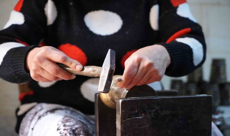 Gaziantep’te bakırcılık mesleğini icra eden kadınlar, sabah bakırları, akşam ise iftar sofralarını süslüyor.