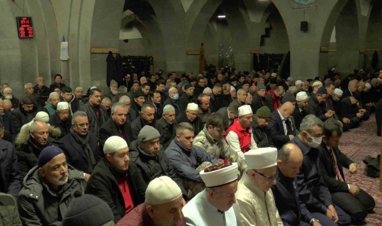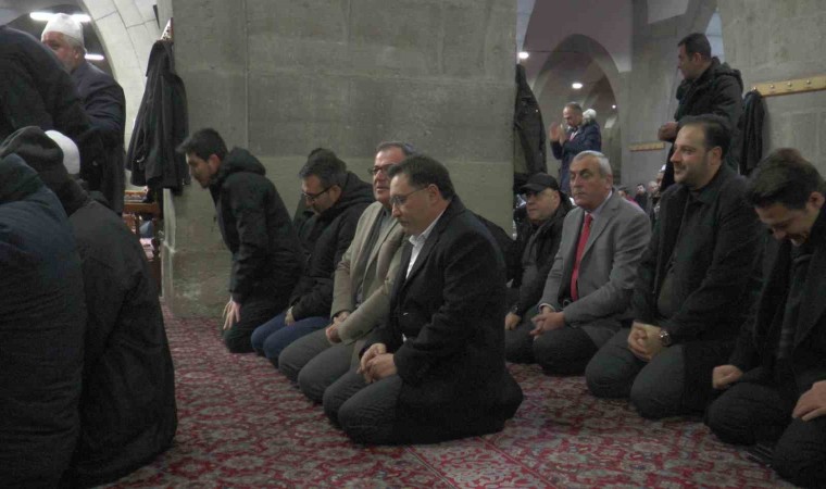 Kayseri’de sabah namazında düzenlenen program ile vatandaşlar ve protokol, 6 Şubat depremlerinde hayatını kaybeden vatandaşlar için dua etti.