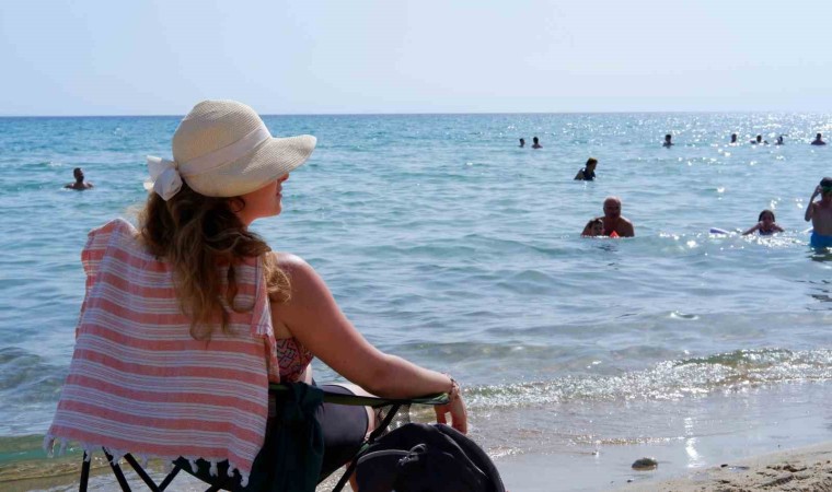 Deniz suyu sıcaklığının 27 derece ölçüldüğü Saros Körfezi’nde serinlemek isteyenler, sık sık denize girerek serin suların tadını çıkarıyor. Sahillere gelenlerden bazıları şemsiyelerin altında oturuyor, bazıları ise güneşlenmeyi tercih ediyor.