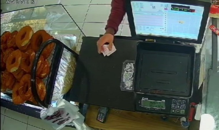 Hırsızlık olayı iş yerinin güvenlik kamerasına anbean yansıdı. Görüntülerde pastaneye müşteri gibi gelen şahısın, iş yerinde çalışan kişinin kasadan uzakta olduğunu fırsat bilerek, sadaka kutusunu montunun içine attığı ve daha sonra pastaneden ayrıldığı yer aldı.
