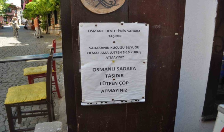 Eskişehir’in en turistik noktalarından olan Tarihi Odunpazarı Evleri’ndeki esnaf, bölgede bulunan sadaka taşlarına değersiz madeni paralar ve çöp atılmasına tepki göstererek işletmesinin duvarına uyarı mesajları yazıp yapıştırdı.