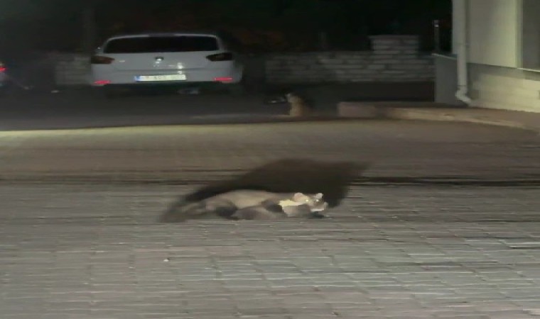 Emek Mahallesi’nde vatandaşlar bir sitenin bahçesinde sansar fark etti. Site bahçesinde bir süre çevreyi kontrol eden sansar, yavrusunu da ağzına alarak uzaklaştı.